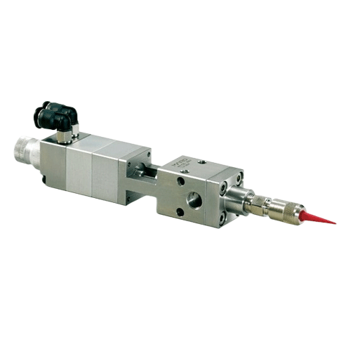 根据点胶流体自动化的需求,我们和韩国MARO联合推出系列的气动点胶阀,配合我们的点胶控制器,可以做到流量的完美控制。出胶量及点胶过程,皆可追溯。气动点胶阀根据气缸的工作方式,分为回吸式点胶阀和柱塞式点胶阀。出胶精度可以做±0.0001CC,还可以搭配我们高精密流量计,实施即时胶量监控,总的点胶量数字显示。高压点胶阀和高压注油阀更是和打胶泵或注油泵完美结合,实现高压精注。整体控制皆可选配MES远程控制,实现无人工厂的点胶、注油核心配件。